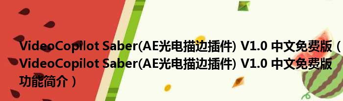 VideoCopilot Saber(AE光电描边插件) V1.0 中文免费版(VideoCopilot Saber(AE光电描边插件) V1.0 中文免费版功能简介)