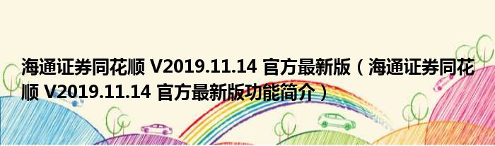 海通证券同花顺 V2019.11.14 官方最新版(海通证券同花顺 V2019.11.14 官方最新版功能简介)