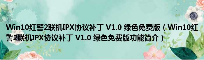 Win10红警2联机IPX协议补丁 V1.0 绿色免费版(Win10红警2联机IPX协议补丁 V1.0 绿色免费版功能简介)