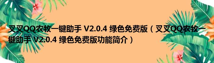 叉叉QQ农牧一键助手 V2.0.4 绿色免费版(叉叉QQ农牧一键助手 V2.0.4 绿色免费版功能简介)