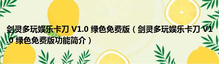 导读 大家好,关于剑灵多玩娱乐卡刀 V1 0 绿色免费版,剑灵多玩娱乐卡刀 V1 0 绿色免费版功能简介这个很多人还不知道,小勒来为大家解答以上的