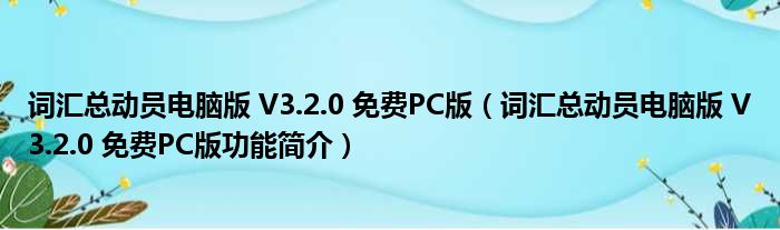 导读 大家好,关于词汇总动员电脑版 V3 2 0 免费PC版,词汇总动员电脑版 V3 2 0 免费PC版功能简介这个很多人还不知道,小勒来为大家解答以上的