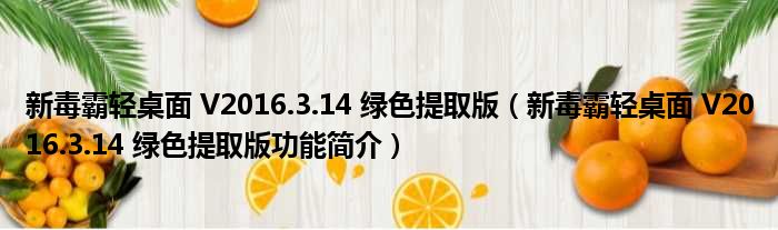 新毒霸轻桌面 V2016.3.14 绿色提取版(新毒霸轻桌面 V2016.3.14 绿色提取版功能简介)