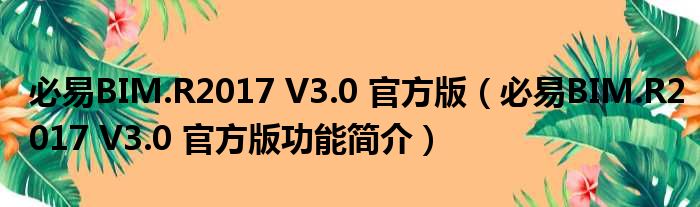 必易BIM.R2017 V3.0 官方版(必易BIM.R2017 V3.0 官方版功能简介)