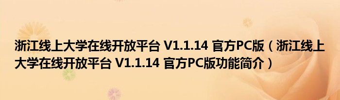 导读 大家好,关于浙江线上大学在线开放平台 V1 1 14 官方PC版,浙江线上大学在线开放平台 V1 1 14 官方PC版功能简介这个很多人还不知道,小勒
