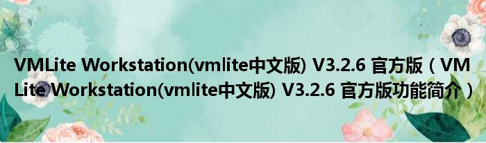 VMLite Workstation(vmlite中文版) V3.2.6 官方版(VMLite Workstation(vmlite中文版) V3.2.6 官方版功能简介)