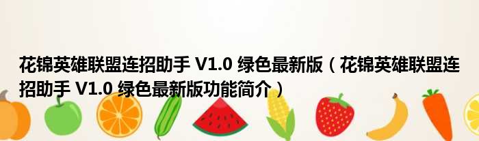 花锦英雄联盟连招助手 V1.0 绿色最新版(花锦英雄联盟连招助手 V1.0 绿色最新版功能简介)