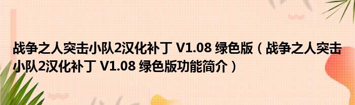战争之人突击小队2汉化补丁 V1.08 绿色版(战争之人突击小队2汉化补丁 V1.08 绿色版功能简介)