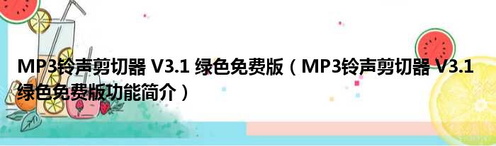 MP3铃声剪切器 V3.1 绿色免费版(MP3铃声剪切器 V3.1 绿色免费版功能简介)