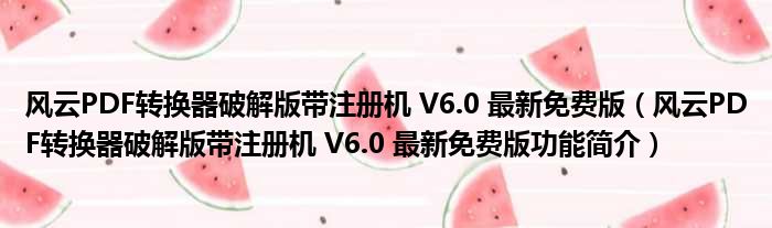 风云PDF转换器破解版带注册机 V6.0 最新免费版(风云PDF转换器破解版带注册机 V6.0 最新免费版功能简介)