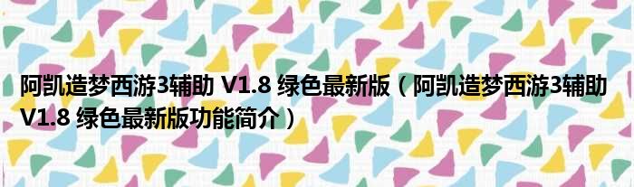 阿凯造梦西游3辅助 V1.8 绿色最新版(阿凯造梦西游3辅助 V1.8 绿色最新版功能简介)