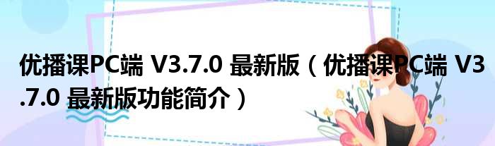 导读 大家好,关于优播课PC端 V3 7 0 最新版,优播课PC端 V3 7 0 最新版功能简介这个很多人还不知道,小勒来为大家解答以上的问题,现在让我们