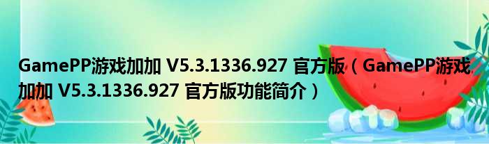GamePP游戏加加 V5.3.1336.927 官方版(GamePP游戏加加 V5.3.1336.927 官方版功能简介)