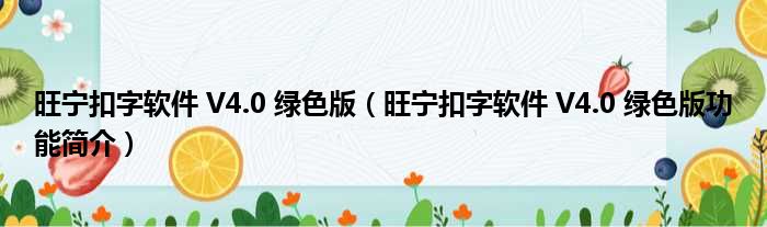 旺宁扣字软件 V4.0 绿色版(旺宁扣字软件 V4.0 绿色版功能简介)