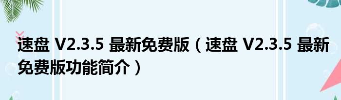 速盘 V2.3.5 最新免费版(速盘 V2.3.5 最新免费版功能简介)