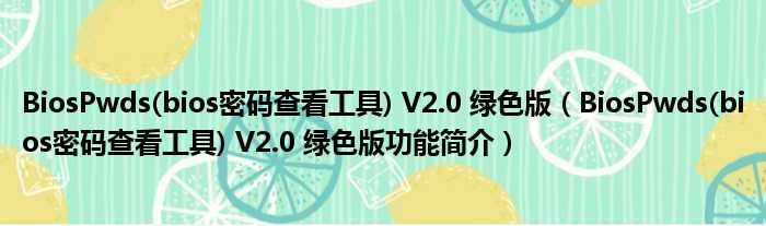 BiosPwds(bios密码查看工具) V2.0 绿色版(BiosPwds(bios密码查看工具) V2.0 绿色版功能简介)