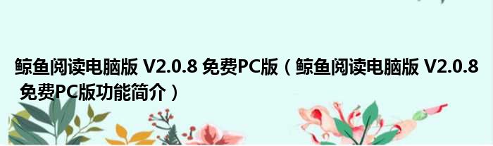 鲸鱼阅读电脑版 V2.0.8 免费PC版(鲸鱼阅读电脑版 V2.0.8 免费PC版功能简介)