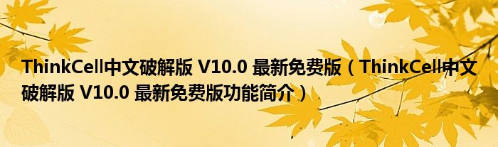 导读 大家好,关于ThinkCell中文破解版 V10 0 最新免费版,ThinkCell中文破解版 V10 0 最新免费版功能简介这个很多人还不知道,小勒来为大家解