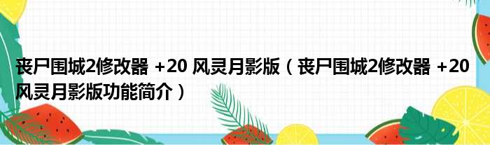 丧尸围城2修改器 +20 风灵月影版(丧尸围城2修改器 +20 风灵月影版功能简介)
