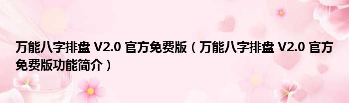 万能八字排盘 V2.0 官方免费版(万能八字排盘 V2.0 官方免费版功能简介)
