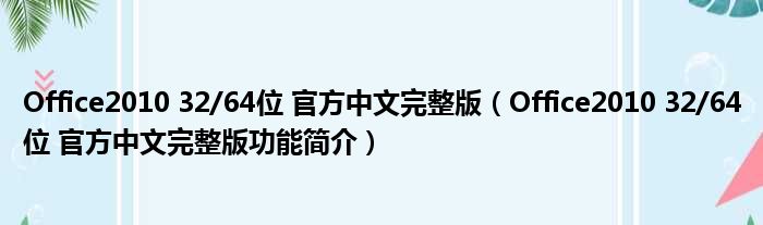 Office2010 32/64位 官方中文完整版(Office2010 32/64位 官方中文完整版功能简介)