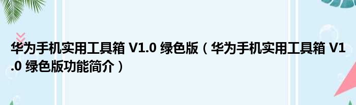 华为手机实用工具箱 V1.0 绿色版(华为手机实用工具箱 V1.0 绿色版功能简介)