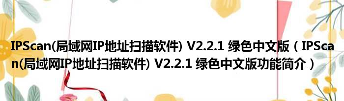 IPScan(局域网IP地址扫描软件) V2.2.1 绿色中文版(IPScan(局域网IP地址扫描软件) V2.2.1 绿色中文版功能简介)