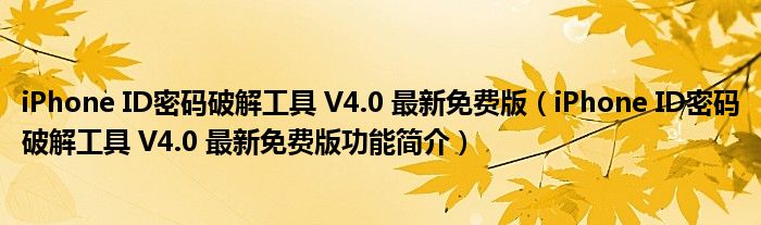 导读 大家好,关于iPhone ID密码破解工具 V4 0 最新免费版,iPhone ID密码破解工具 V4 0 最新免费版功能简介这个很多人还不知道,小勒来为大