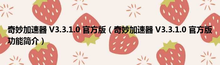 奇妙加速器 V3.3.1.0 官方版(奇妙加速器 V3.3.1.0 官方版功能简介)