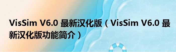 大家好,关于VisSim V6.0 最新汉化版,VisSim V6.0 最新汉化版功能简介这个很多人还不知道,小勒来为大家解答以上的问题,现在让我们一起来看看吧!