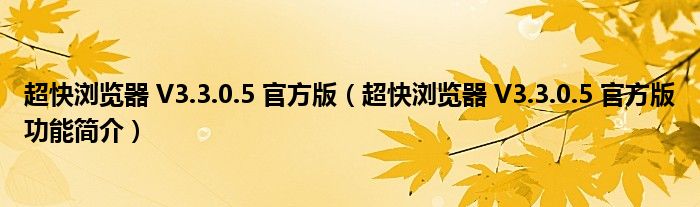 超快浏览器 V3.3.0.5 官方版(超快浏览器 V3.3.0.5 官方版功能简介)