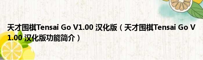 天才围棋Tensai Go V1.00 汉化版(天才围棋Tensai Go V1.00 汉化版功能简介)