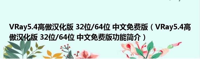 VRay5.4高傲汉化版 32位/64位 中文免费版(VRay5.4高傲汉化版 32位/64位 中文免费版功能简介)