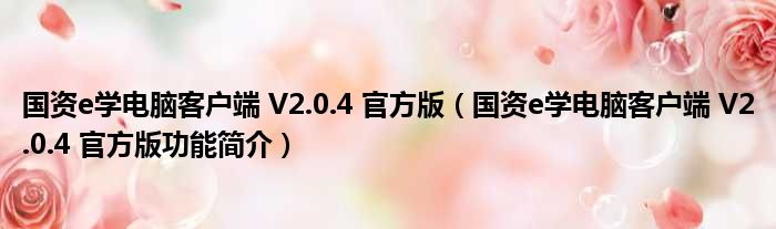 导读 大家好,关于国资e学电脑客户端 V2 0 4 官方版,国资e学电脑客户端 V2 0 4 官方版功能简介这个很多人还不知道,小勒来为大家解答以上的问