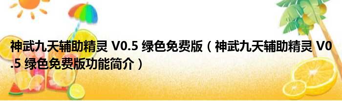 神武九天辅助精灵 V0.5 绿色免费版(神武九天辅助精灵 V0.5 绿色免费版功能简介)