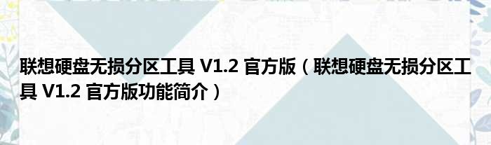 联想硬盘无损分区工具 V1.2 官方版(联想硬盘无损分区工具 V1.2 官方版功能简介)