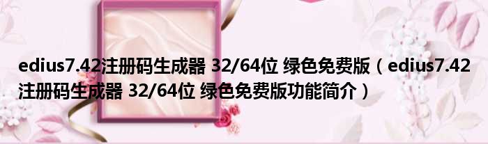 edius7.42注册码生成器 32/64位 绿色免费版(edius7.42注册码生成器 32/64位 绿色免费版功能简介)