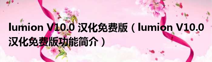 lumion V10.0 汉化免费版(lumion V10.0 汉化免费版功能简介)