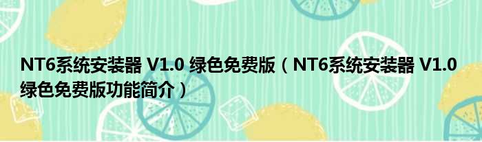 NT6系统安装器 V1.0 绿色免费版(NT6系统安装器 V1.0 绿色免费版功能简介)