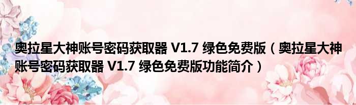 导读 大家好,关于奥拉星大神账号密码获取器 V1 7 绿色免费版,奥拉星大神账号密码获取器 V1 7 绿色免费版功能简介这个很多人还不知道,小勒来