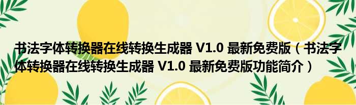 导读 大家好,关于书法字体转换器在线转换生成器 V1 0 最新免费版,书法字体转换器在线转换生成器 V1 0 最新免费版功能简介这个很多人还不知