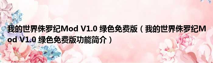 导读 大家好,关于我的世界侏罗纪Mod V1 0 绿色免费版,我的世界侏罗纪Mod V1 0 绿色免费版功能简介这个很多人还不知道,小勒来为大家解答以上