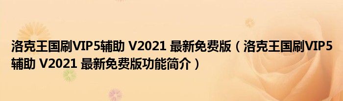 导读 大家好,关于洛克王国刷VIP5辅助 V2021 最新免费版,洛克王国刷VIP5辅助 V2021 最新免费版功能简介这个很多人还不知道,小勒来为大家解答