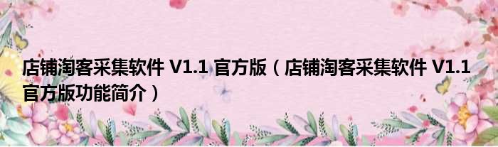 店铺淘客采集软件 V1.1 官方版(店铺淘客采集软件 V1.1 官方版功能简介)