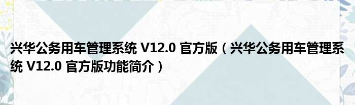 兴华公务用车管理系统 V12.0 官方版(兴华公务用车管理系统 V12.0 官方版功能简介)