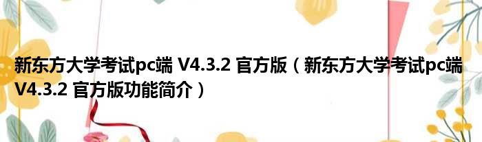 新东方大学考试pc端 V4.3.2 官方版(新东方大学考试pc端 V4.3.2 官方版功能简介)