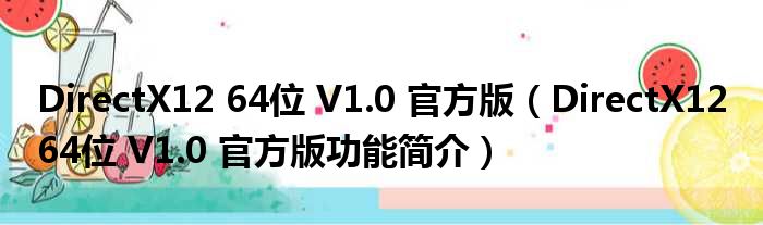 DirectX12 64位 V1.0 官方版(DirectX12 64位 V1.0 官方版功能简介)