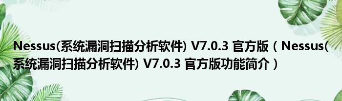Nessus(系统漏洞扫描分析软件) V7.0.3 官方版(Nessus(系统漏洞扫描分析软件) V7.0.3 官方版功能简介)