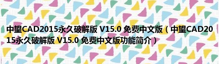 中望CAD2015永久破解版 V15.0 免费中文版(中望CAD2015永久破解版 V15.0 免费中文版功能简介)