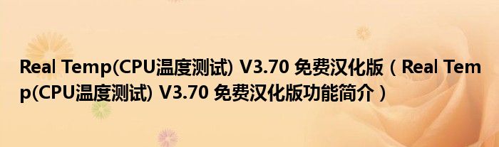 Real Temp(CPU温度测试) V3.70 免费汉化版(Real Temp(CPU温度测试) V3.70 免费汉化版功能简介)